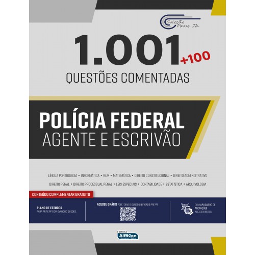 Inovação e comprometimento com o aluno são as principais diretrizes da empresa, e, seguindo essa premissa, a Editora AlfaCon em parceria com os autores, fez uma compilação das questões da obra Passe Já 5.000 carreiras policiais e criou uma edição especial com 1.001 questões voltadas para o concurso da Polícia Rodoviária Federal. Assim você poderá estudar de forma mais direcionada, objetiva e com questões 100% focadas no edital.