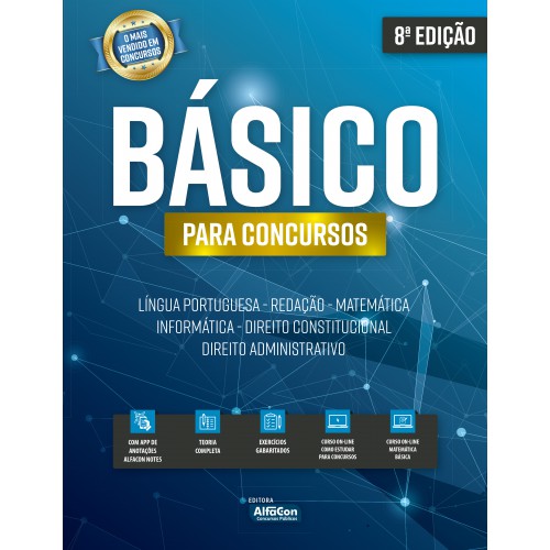 Por isso, o AlfaCon, preocupando-se com você, iniciante no universo dos concursos públicos, criou o BÁSICO PARA CONCURSOS. Esta obra, que está entre as mais vendidas no segmento de concursos públicos, tendo tradição, está em sua 8ª edição, resultado do estudo aprofundado de professores especialistas nas suas áreas, possibilitando que você tenha acesso aos principais conteúdos cobrados nos mais importantes concursos públicos, tendo exercícios gabaritados para você testar seu conhecimento também!
