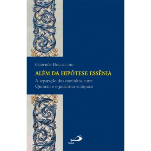Este volume oferece uma nova visão provocativa da ideologia da seita de Qumran, a antiga comunidade do deserto intimamente relacionada aos Manuscritos do Mar Morto. Gabriele Boccaccini se move para além da hipótese essênia e postula uma relação única entre o que ele denomina "judaísmo enóquico" e o grupo tradicionalmente conhecido como os essênios. Construindo sua tese em cima do que os relatos históricos nos dizem sobre os essênios e a partir de uma análise sistemática dos documentos encontrados em Qumran, Boccaccini argumenta que a literatura denuncia o núcleo de uma variedade antiga e distinta de judaísmo do segundo templo. Seguindo o desenvolvimento dessa tradição, Boccaccini mostra que a comunidade essênia em Qumran era realmente o produto do partido enóquico, que, por sua vez, contribuiu para o nascimento dos grupos conduzidos por João Batista e por Jesus. Argumentada de modo convincente, esta obra certamente despertará novo debate na discussão sobre a comunidade de Qumran e os famosos Manuscritos do Mar Morto. "Gabriele Boccaccini deve ser elogiado por sua análise perspicaz e lucidamente apresentada das origens da comunidade do Mar Morto em Qumran. A teoria de Boccaccini sobre a relação dessa comunidade com os essênios oferece um caminho em torno de um impasse corrente nos estudos de Qumran. Seus muitos insights acerca dos primeiros conflitos a respeito do sacerdócio e da autoridade revelam novas direções promissoras no estudo das raízes das disputas sectárias no judaísmo antigo." - William Adler North Carolina State University