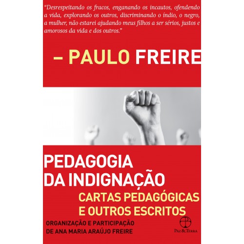Este é um livro escrito com paixão, que certamente apaixonará o leitor. Paulo Freire foi um pensador atuante, que fez da educação um instrumento humanizador de cunho ao mesmo tempo prático e utópico. Adversário do pragmatismo que tende a transformar em técnica imediatista as operações do saber, ele via na educação um conjunto de forças cujo alvo é a liberdade individual e a transformação social. Paulo sempre dizia que as verdadeiras ações éticas e genuinamente humanas nascem de dois sentimentos contraditórios: do amor e da raiva. Composto por cartas escritas pouco antes de seu falecimento, em maio de 1997, o livro foi organizado por sua esposa Ana Maria de Araújo Freire a partir das cartas manuscritas deixadas pelo autor. Um livro fundamental para quem estuda a obra freireana, tanto por conter as últimas reflexões do autor ainda em vida, como pela importância e modo de abordagem dos temas tratados. • Pedagogia da indignação é o último livro de Paulo Freire. Algumas cartas não chegaram a ser finalizadas, porque começaram a ser escritas pouco antes do seu falecimento, em maio de 1997. • Paulo Freire criou um método de alfabetização de jovens e adultos que leva seu nome. Seus textos e suas propostas educacionais são mundialmente conhecidos e respeitados. Em 2012, ele foi nomeado Patrono da Educação Brasileira.
