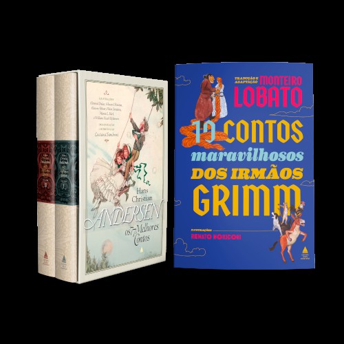 Quase 150 anos após sua morte, Hans Christian Andersen continua a encantar leitores de todas as idades. Com um estilo próprio, que foge muitas vezes das estruturas tradicionais dos contos de fadas e traz às narrativas um divertido tom de ironia, o escritor inspirou-se em casos contados pelo pai, durante a infância miserável na Dinamarca, e também naqueles ouvidos ao longo da vida. Para esta coletânea, dividida em dois volumes, a escritora Luciana Sandroni selecionou 77 histórias em três grandes conjuntos: contos do mar e do campo, contos domésticos e contos urbanos. Esta edição traz ainda as clássicas ilustrações de William Heath Robinson, Edmund Dulac, Edward Shenton, Elenore Abbott, Helen Stratton e Maria L. Kirk. 10 Contos Maravilhosos dos Irmãos Grimm: 10 inesquecíveis histórias contadas pelos irmãos Grimm, aqui traduzidas e adaptadas por ninguém menos do que Monteiro Lobato, o pai da literatura infantil brasileira. As ilustrações ficam a cargo de Renato Moriconi, artista plástico paulista que já recebeu prêmios da Fundação Nacional do Livro Infantil e Juvenil (FNLIJ), o prêmio Jabuti (CBL) e o prêmio da Fundación Cuatrogatos. Conheça também o livro ""O livro de ouro dos contos de fadas"" e os boxes ""Os 77 melhores contos de Grimm"" e ""Os 77 melhores contos de Hans Christian Andersen""."