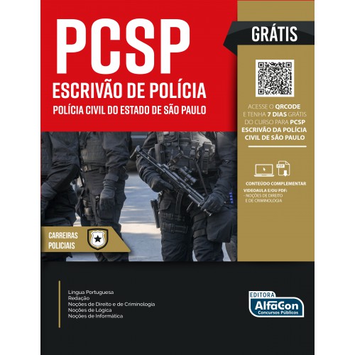 Além disso, com o objetivo de tornar seus estudos mais eficientes, o concurseiro terá um acesso grátis por 7 dias PC SP - Escrivão da Polícia Civil de São Paulo.