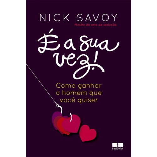 O livro que ensina como ganhar o homem que quiser Em É a sua vez, o instrutor profissional de relacionamentos Nick Savoy ensina às suas leitoras dicas e ferramentas necessárias para conquistar o homem dos sonhos — mesmo que ele pareça inalcançável. Após observar diversas interações sociais entre homens e mulheres, o autor desvenda os segredos que os homens nunca contaram, ajudando mulheres ao redor do mundo na busca pelo cara ideal.