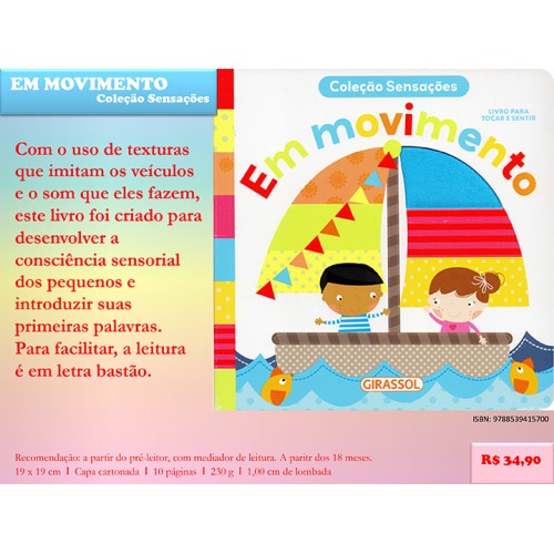 Com o uso de texturas que imitam os veículos e o som que eles fazem, este livro foi criado para desenvolver a consciência sensorial dos pequenos e introduzir suas primeiras palavras. Para Facilitar, a leitura é em letra bastão.