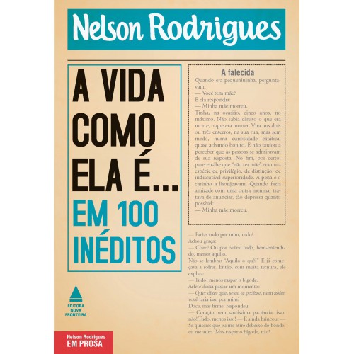 A vida como ela é dispensa maiores apresentações. Já nos anos 1950, quando estrearam, essas histórias de ciúme, obsessão, dilemas morais, inveja, desejos desgovernados, adultério e morte atraíram os leitores, tornando-se um grande sucesso. De lá para cá, a popularidade dos contos de Nelson Rodrigues só fez aumentar com as inúmeras adaptações que sofreram, passando das páginas do jornal a programa de rádio, fotonovela, filme, peça de teatro e até série de televisão. Tamanho era o sucesso da coluna que, em 1961, o próprio autor fez uma seleção de cem contos para publicar em livro, incluindo ali narrativas que ficaram célebres, como “A dama do lotação” e “A coroa de orquídeas”, entre outras. Agora, nesta nova reunião, comemorativa do seu centenário, tentamos escolher textos tão expressivos e representativos de “A vida como ela é...” quanto os da primeira coletânea. E todos inéditos em livro. Aqui o leitor terá oportunidade de conhecer cem outros contos, que garimpamos nos dez anos de publicação da coluna no periódico Última Hora, inclusive o primeiro da série: “O homem do cemitério”. A natureza dessas histórias é visceral, elas partem do comezinho, mas se amplificam num humano profundo, oscilando entre o desespero e a graça — todas com a sutileza e a inteligência de um grande escritor e, sobretudo, comunicador. Leitura imperdível.