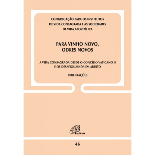 Este documento é fruto da Assembleia Plenária do dicastério sobre o tema: "Vinho novo em odres novos. A vida consagrada cinquenta anos depois da Lumen gentium e da Perfectae caritatis", que se centrou no caminho percorrido pela vida consagrada no pós-Concílio, tentando ler, em síntese, os desafios ainda em aberto. As presentes Orientações situam-se na linha de "um exercício de discernimento evangélico, no qual se tenta reconhecer - à luz do Espírito - um `apelo` que Deus faz ressoar na própria situação histórica: também nele e através dele Deus chama os consagrados e as consagradas do nosso tempo". Na perspectiva de um exercício de discernimento, estas Orientações pretendem ler práticas inadequadas, indicar processos bloqueados, fazer perguntas concretas, pedir razões das estruturas de relação, de governo e de formação sobre o apoio real dado à forma de vida evangélica das pessoas consagradas. Estas Orientações são destinadas a testar com ousadia os odres adequados para guardar os vinhos novos que o Espírito continua a dar à sua Igreja, exortando a levar a cabo mudanças, mediante ações concretas a breve e longo prazos.
