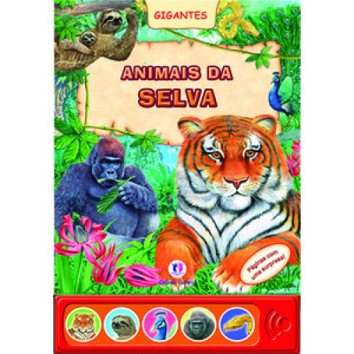 Você gostaria de saber mais sobre os animais da selva? Então, abra este livro diferente! Nas próximas páginas, você verá o pavão, o bicho-preguiça, o gorila e o tigre – e ainda poderá ouvir suas vozes!